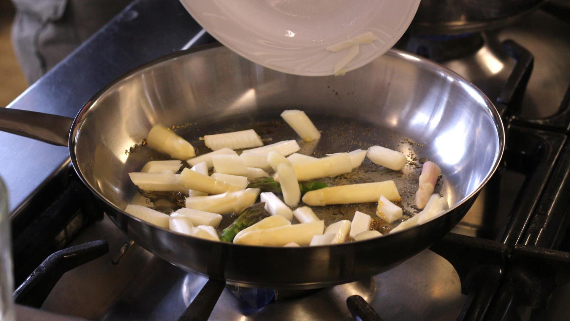 Spargel hinzugeben und je nach Dicke bei mittlerer Hitze etwa 12-18 Minuten kochen. Grnen Spargel kannst du natrlich auch ganz traditionell zubereiten. Gebratener grner Spargel - so gehts.